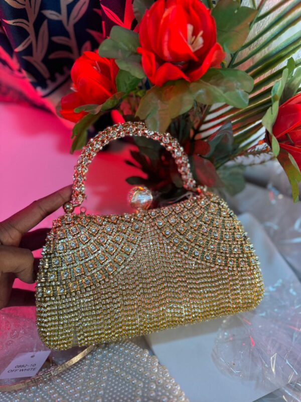 বউ ব্যাগ কালার ৫ টা ব্যাগের ডিজাইনে হোয়াইট কম্বিনেশন। ব্যাগের ফেব্রিক্স আর্টিফিশিয়াল লেদার। ব্যাগের মেটিরিয়াল চায়না। মেটিরিয়াল কালার গোল্ডেন। স্পেস